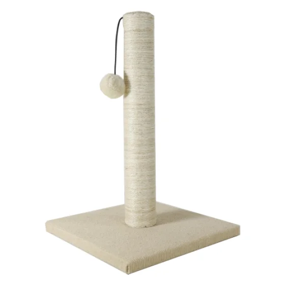 Когтеточка Энимал с бубоном для кошек, джут, белая, 24х24х37 см
