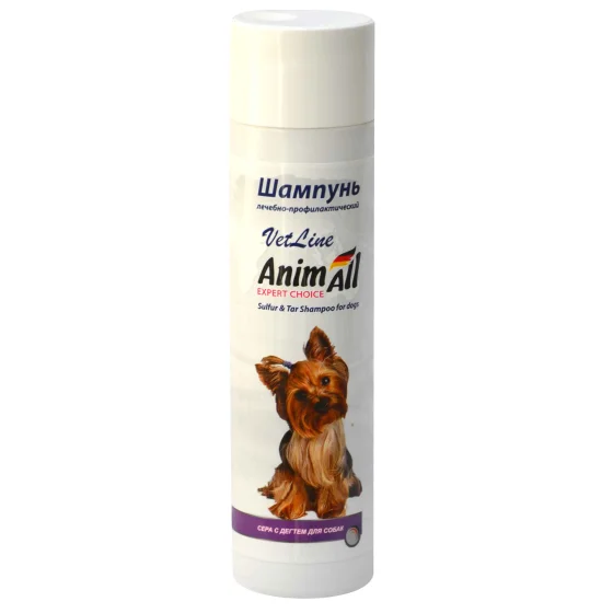 Шампунь AnimAll VetLine з сірою і дьогтем дуже добре допомагає при проблемах із шерстю. У мого собаки пропала лупа вже після першого миття, і шерсть стала блискучою.
