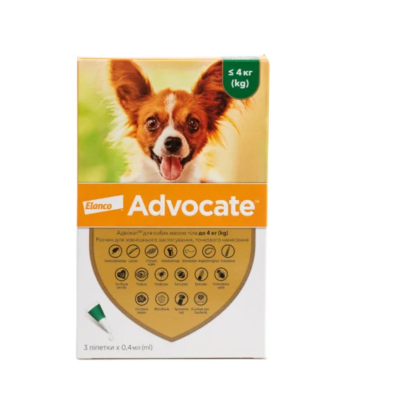 Капли от блох, отодектоза, саркоптоза, демодекоза Elanco Advocate для собак до 4 кг, цена за 1 пипетку