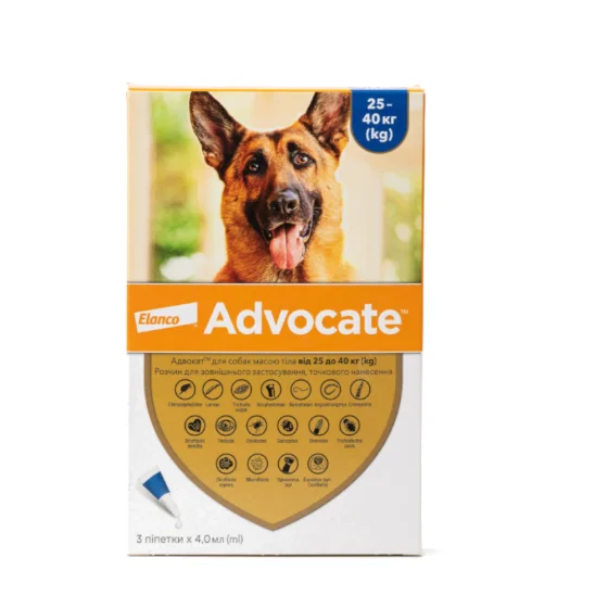 Капли от блох, отодектоза, саркоптоза Elanco Advocate для собак свыше 25 кг, цена за 1 пипетку