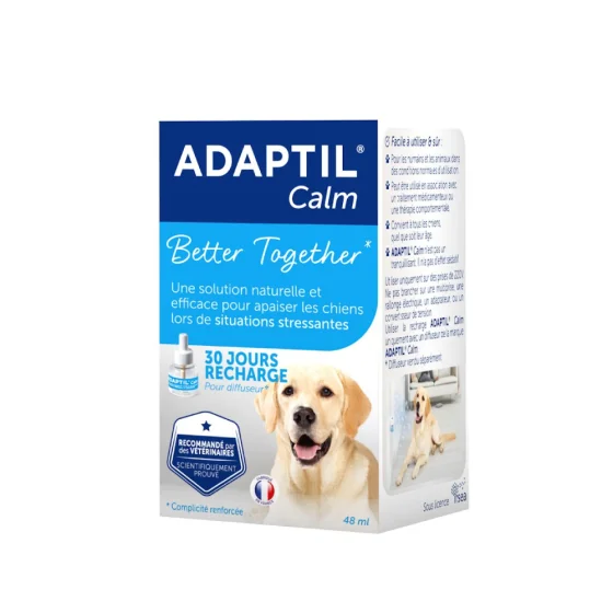 Adaptil – эффективное и безопасное средство для восстановления хорошего самочувствия и нормализации поведения собаки в стрессовых ситуациях. Синтезированный успокаивающий феромон D.A.P., аналог феромона кормящих сук, успокаивает собаку на подсознательном уровне, создавая ощущение безопасности и умиротворения.