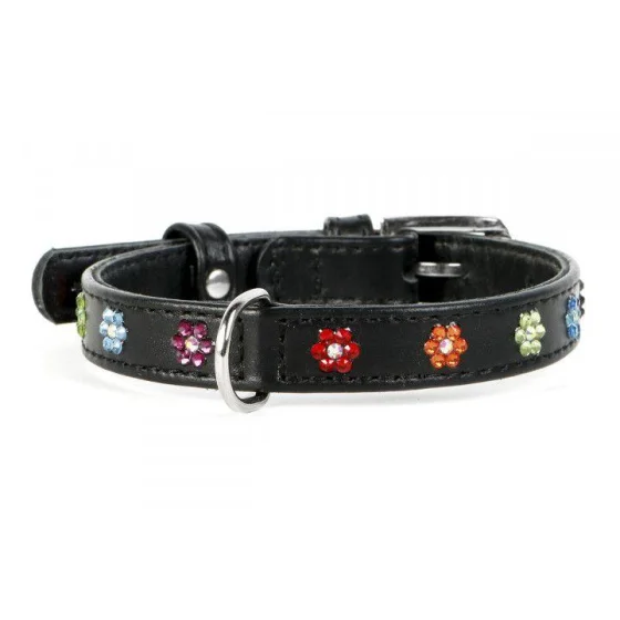 Ошейник Waudog Glamour с клеевыми стразами "Цветочек", ширина 20 мм, длина 30-39 см, черный
