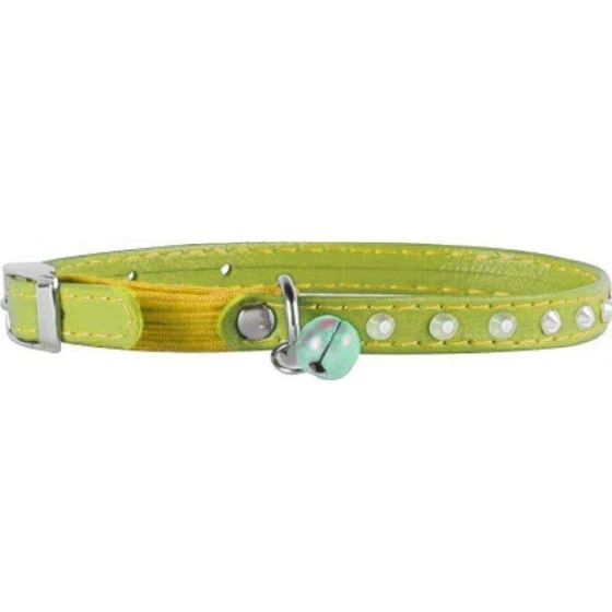 Ошейник Waudog Glamour с резинкой, клеевые стразы, для котов, 9 мм х 22-30 см, салатовый