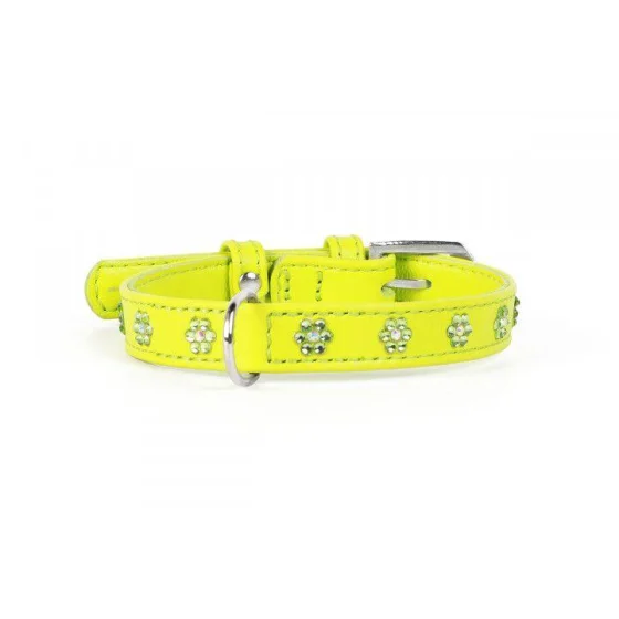 Ошейник Waudog Glamour для кошек, с резинкой, клеевые стразы - "Цветочек", 9 мм х 22-30 см, салатовый