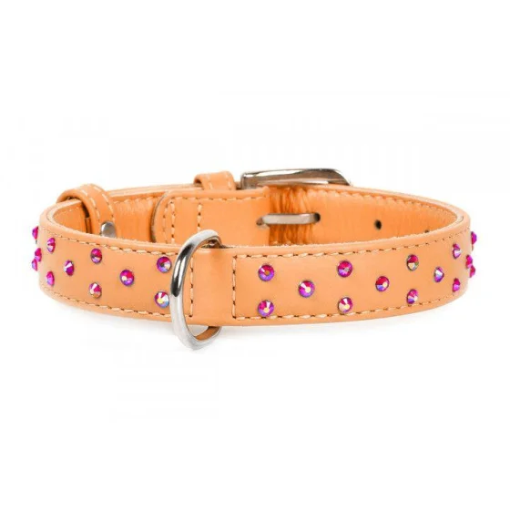 Ошейник Waudog Glamour с клеевыми стразами, ширина 25 мм, длина 38-49 см, оранжевый