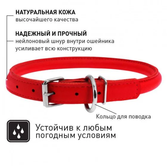 Ошейник Waudog Glamour круглый, диаметр 10 мм, длина 33-41 см, красный