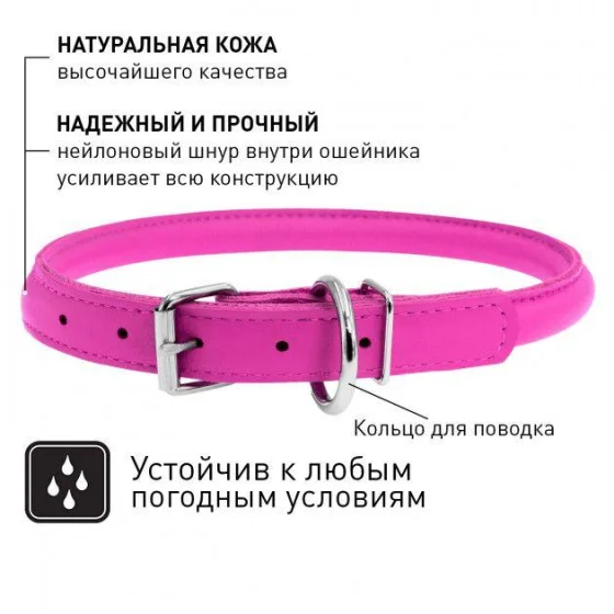 Ошейник Waudog Glamour круглый, диаметр 13 мм, длина 45-53 см, розовый
