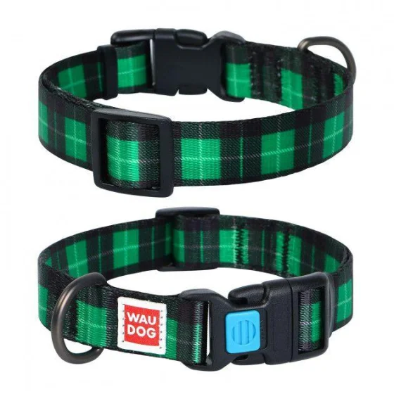 Ошейник Waudog Nylon с рисунком "Шотландка зеленая" ширина 15 мм, длина 23-35 см
