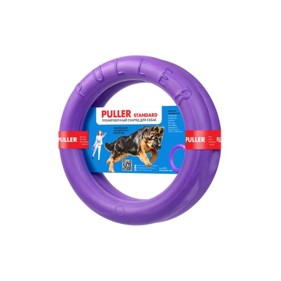 PULLER Standard разработан для средних и крупных пород собак, позволяет отрабатывать специальный комплекс упражнений, который развивает все группы мышц собаки. Для упражнений с PULLER Standard рекомендуется использовать два кольца.