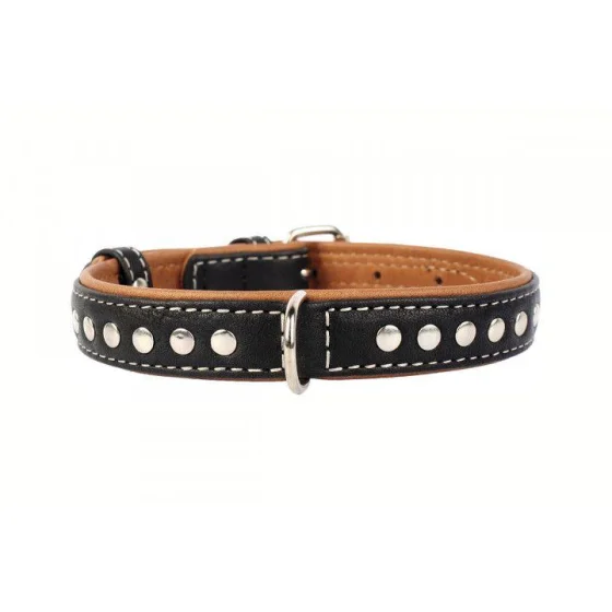 Ошейник Waudog Soft с металическим украшением, черный верх, ширина 35 мм, длина 46-60 см