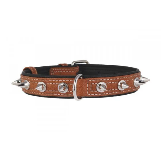 Ошейник Waudog Soft с шипами, коричневый верх, ширина 35 мм, длина 57-71 см
