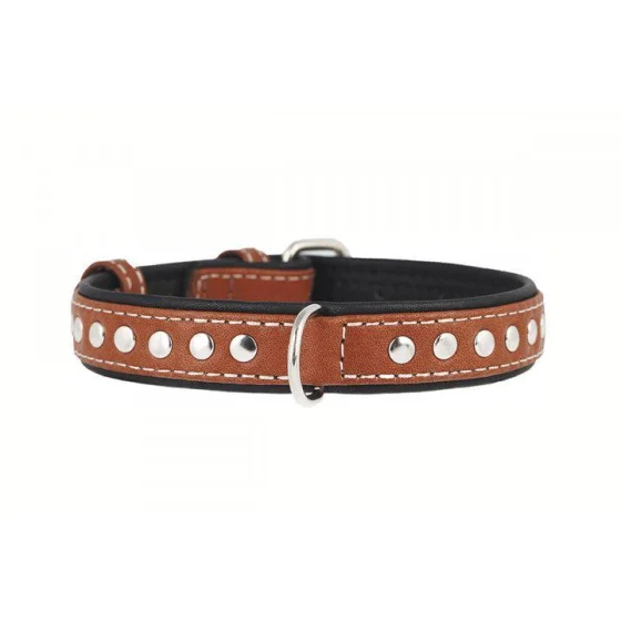 Ошейник Waudog Soft с металическим украшением, коричневый верх, ширина 35 мм, длина 57-71 см