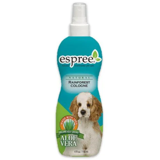 Одеколон Espree Rainforest Cologne со свежим лесным ароматом для собак;— это ароматный, свежий, мягкий антистатические одеколон из натуральных эфирных масел, которые глубоко проникают в шерстный покров, улучшая состояние шерсти и предотвращая ее слипание, что позволяет легко расчесывать и чистить шерсть вашего питомца.