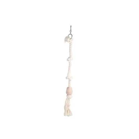 Игрушка Flamingo Tarzan – веревка с узлами для птиц, предназначена для маленьких и средних попугаев. Основой является прочный канат, на который нанизаны деревянные элементы, делая игрушку интересной и безопасной для активного времяпрепровождения птицы. Способствует физической активности, развитию координации и поддержанию здоровья питомца.