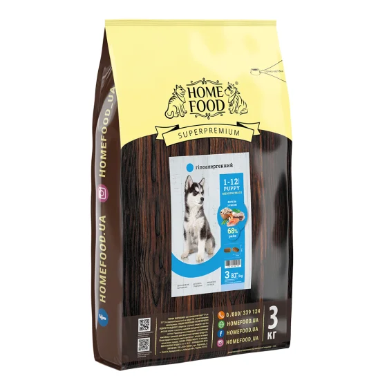 Сухой корм Home Food гипоаллергенный для щенков средних и крупных пород, форель с рисом, 3 кг