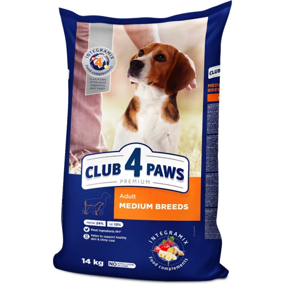 Сухой корм Клуб 4 Лапы Adult Medium Breeds Premium для взрослых собак средних пород от 11 до 25 кг, 14 кг