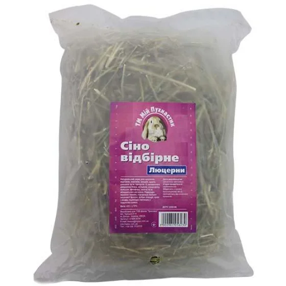 Сено гарної якості, без неприємного запаху. Мої морські свинки їдять його охоче, але для деяких тварин може бути трохи грубуватим. Загалом, задоволена покупкою.