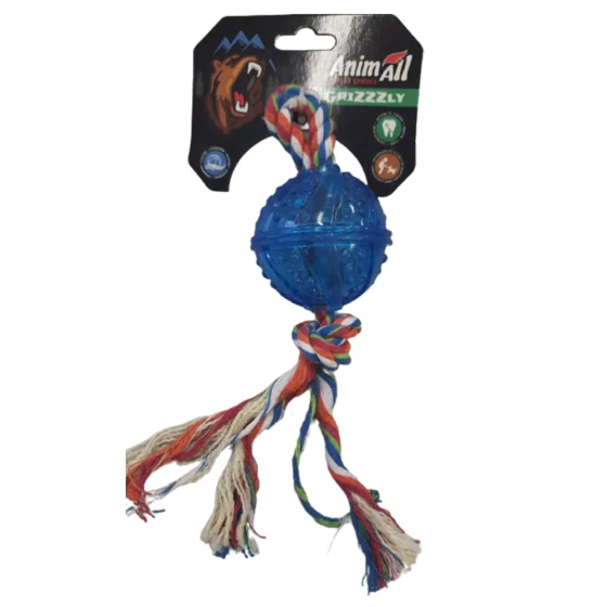 Игрушка ЭнимАлл GrizZzly дентал, Мяч с канатом, для собак, 15.2×6.2 см