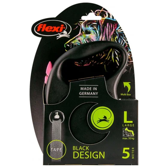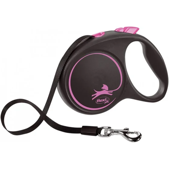 Поводок-рулетка Flexi Black Design L для собак до 50 кг, 5 м, лента, розовая