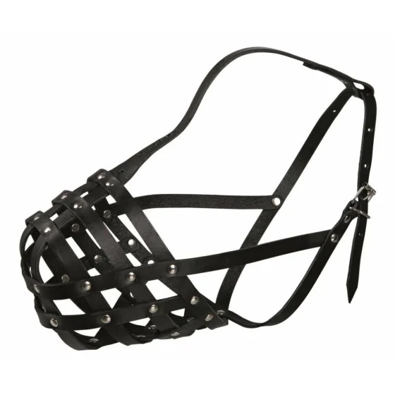Кожаный намордник для собак Trixie с частой сеткой безопасности предназначен для фиксирования пасти собак агрессивных к постороннему окружению, например при посещении врача-ветеринара. Намордник выполнен из прочной, эластичной, натуральной кожи черного цвета и оснащен широкой обивкой носа и регулируемым лобным ремнем.