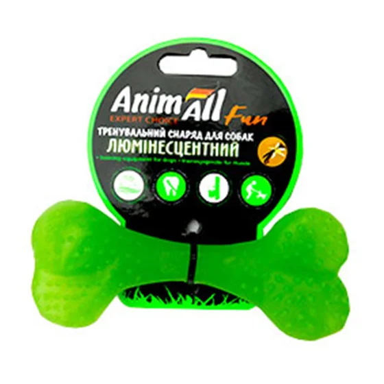 Игрушка ЭнимАлл Фан кость для собак, люминесцентная, 12 см, зеленая