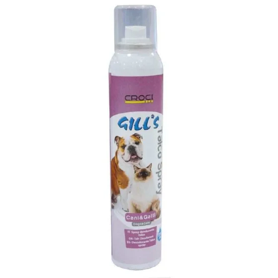Дезодорант-спрей Croci Gill's с тальком дарит Вашему питомцу приятный аромат и поддерживает свежесть шерсти. Средство полностью безопасно для котов и собак, не раздражает кожу и не содержит спирта.