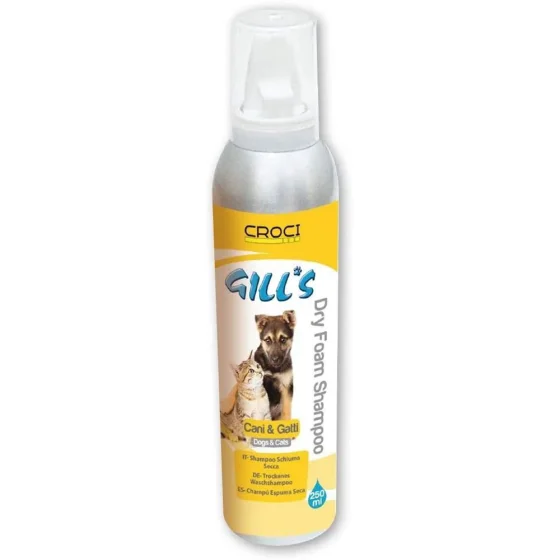 Пенка-шампунь Croci Gill's для кошек и собак, 250 г, создан для бережного очищения шерсти без использования воды. Продукт эффективно удаляет загрязнения и поддерживает чистоту шерсти, сохраняя её мягкой и ухоженной.