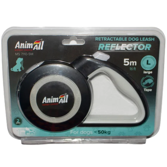 Поводок-рулетка АнимАлл Reflector для собак весом до 50 кг, 5 м, серо-чёрная