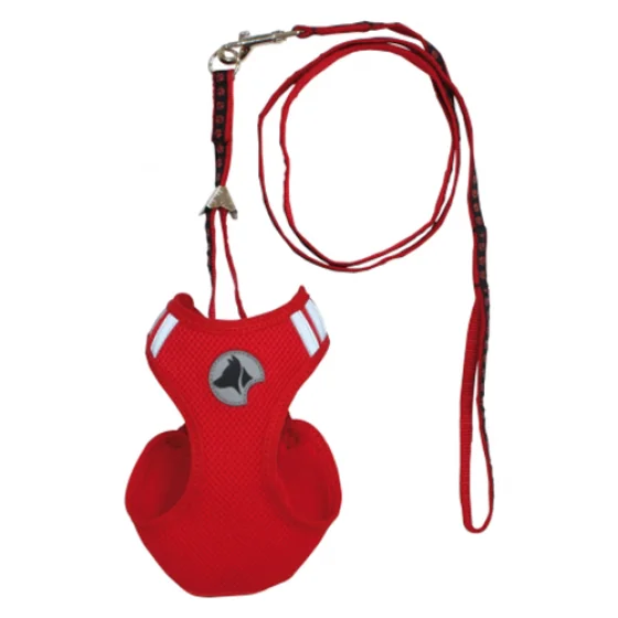 Шлейка равномерно распределяет нагрузку на тело собаки, предотвращая травмы шеи и хрящевых тканей гортани. Поводок прочный и удобный, позволяет легко контролировать активного питомца.