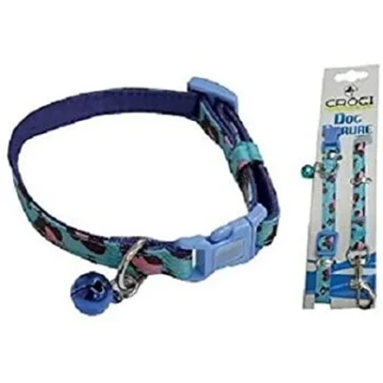 Ошейник+поводок Croci Mini Jungle для собак, с колокольчиком, нейлон, голубой, 16-24×0.8 см/0.8×120 см
