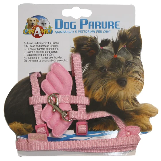 Шлея+поводок Croci Angel Wings для собак, нейлон, розовый, 20-29×1 см/1×120 см