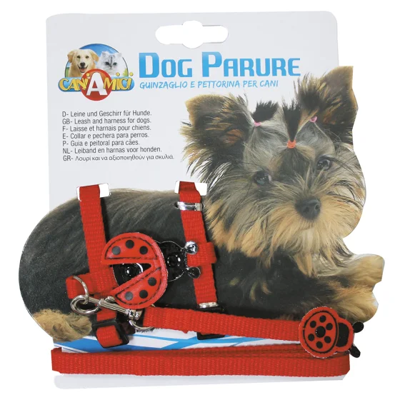 Шлейка с поводком Croci Ladybird в красном цвете станет ярким аксессуаром для ежедневных прогулок с собакой. Она изготовлена из качественного и прочного нейлона, который сочетает лёгкость и надёжность, обеспечивая комфорт питомцу.