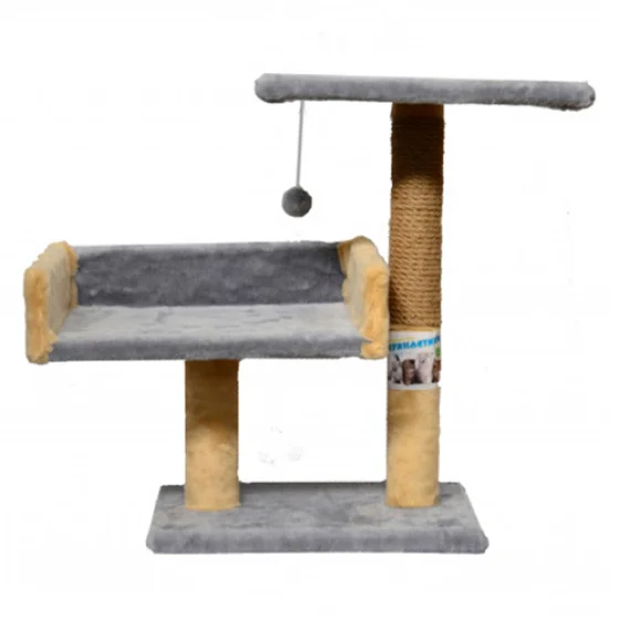 Когтеточка Пушистики для кошек, с 2-х этажным диваном, джут, серый, 30×38×50 см