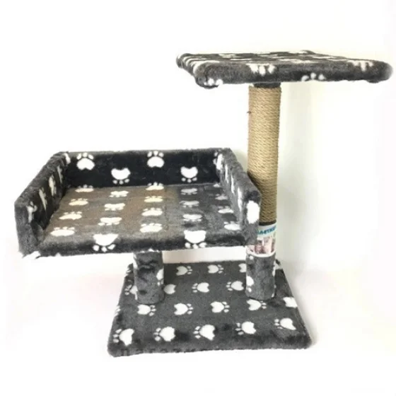 Когтеточка Пушистики для кошек, с 2-х этажным диваном, джут, серый с лапками, 30×38×50 см
