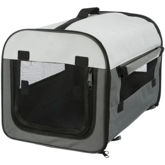 Сумка-переноска Trixie Soft Kennel, предназначена для транспортировки кошек и сделана из крепкого полиэстера. Идеальное место для домашних животных дома, в поездках или на выставках. Дверь может быть полностью закрыта на молнию. Есть вставки из сетки для хорошей циркуляции воздуха. Также, имеется задний карман для игрушек и лакомств, и нейлоновая ручка для удобной транспортировки.