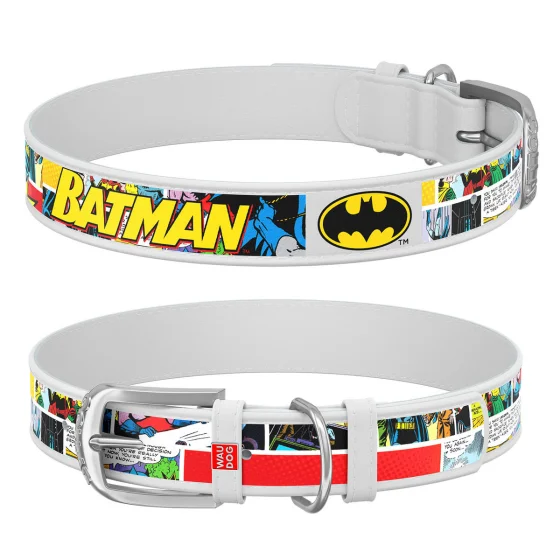 Ошейник WAUDOG Design с QR паспортом, рисунок "Бэтмен1" ширина 25 мм, длина 37-48 см, белый