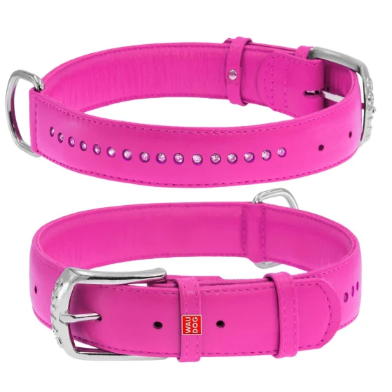 Ошейник WAUDOG GLAMOUR, со стразами, ширина 25 мм, длина 38-49 см, розовый