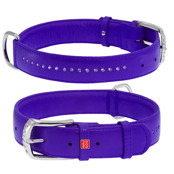 Ошейник WAUDOG GLAMOUR, со стразами, ширина 15 мм, длина 27-36 см, фиолетовый