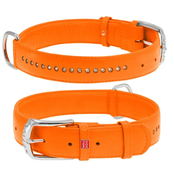 Ошейник WAUDOG GLAMOUR, со стразами, ширина 20 мм, длина 30-39 см, оранжевый
