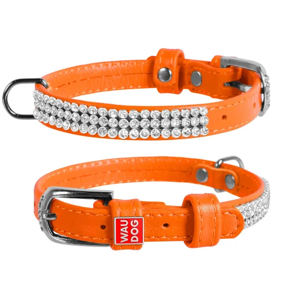 Ошейник WAUDOG GLAMOUR, со стразами, ширина 12 мм, длина 21-29 см, оранжевый