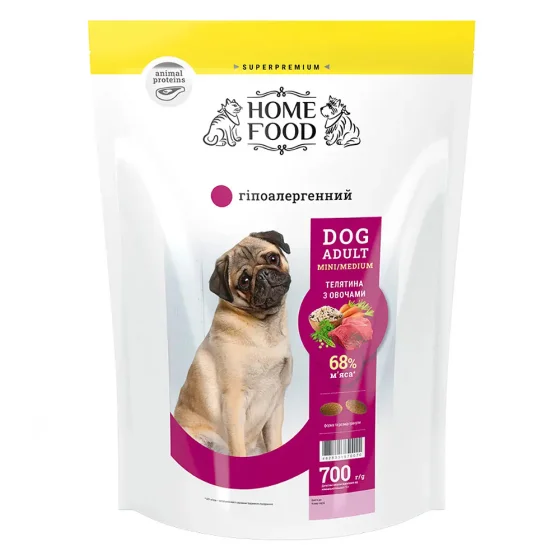Сухой корм Home Food для собак мелких и средних пород, гипоаллергенный, телятина с овощами, 700 г