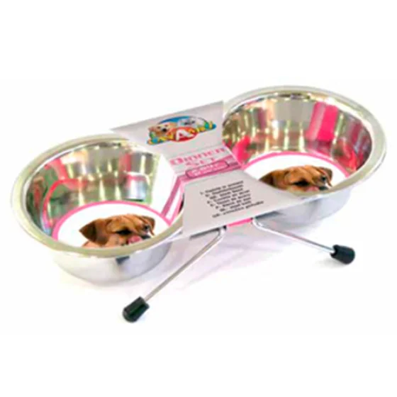 Croci Double Stainless Steel Feeder — практичная и удобная двойная миска на подставке, идеально подходящая для средних и крупных собак. Изготовлена из прочной нержавеющей стали, устойчива к коррозии, легко моется и долго служит. Две миски позволяют использовать одну для корма, а другую — для воды.