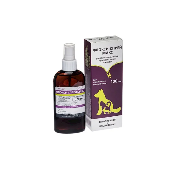 Ранозаживляющее спрей BioTestLab флокси-спрей Макс при дерматите, панариции для собак и кошек, 100 мл