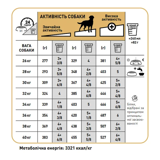 | Вес собаки | Нормальная активность | Повышенная активность | Высокая активность |