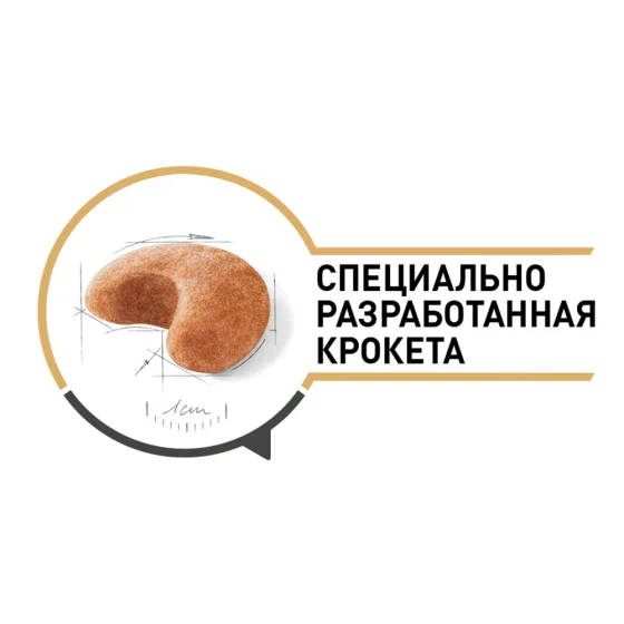 Эксклюзивная, специально разработанная форма крокеты облегчает захват корма и стимулирует его разгрызание.