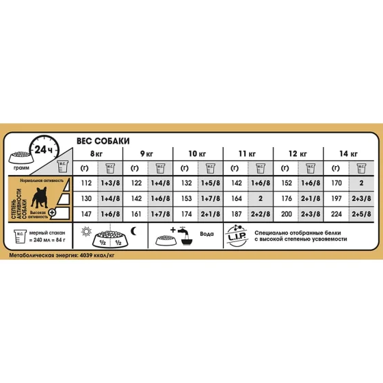 | Вес собаки | Нормальная активность | Повышенная активность | Высокая активность |