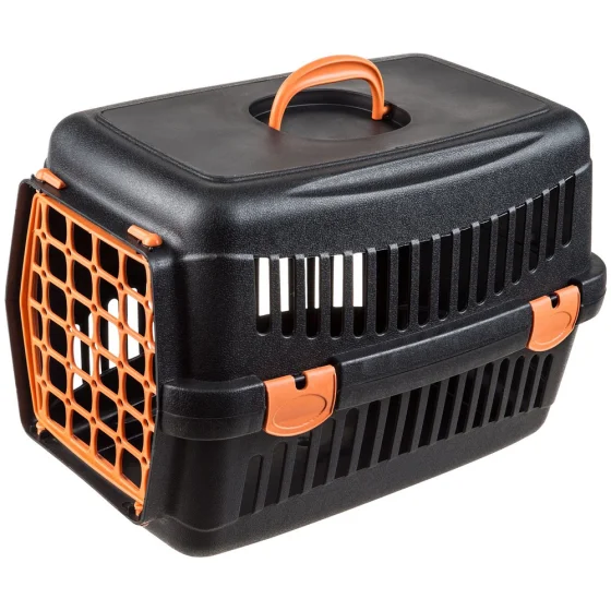 Переноска ЭнимАлл для кошек и собак, чёрная с оранжевой дверью, 48.5×32.5×32.5 см