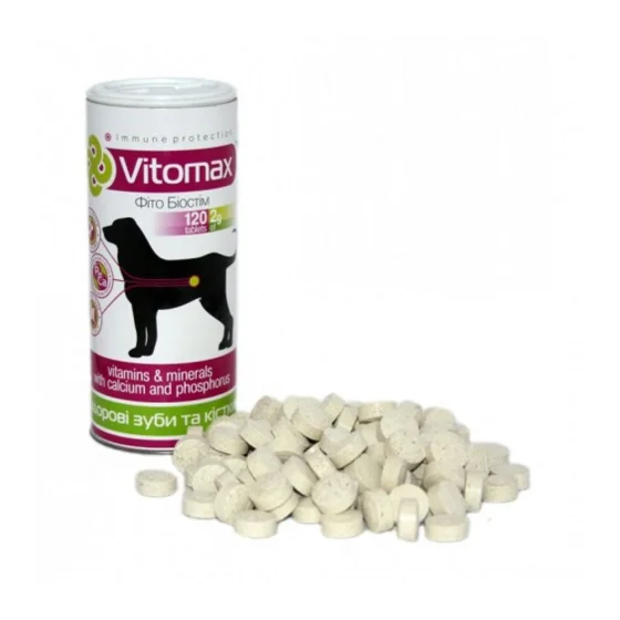 Витамины Vitomax для укрепления зубов и костей собак, 120 таб