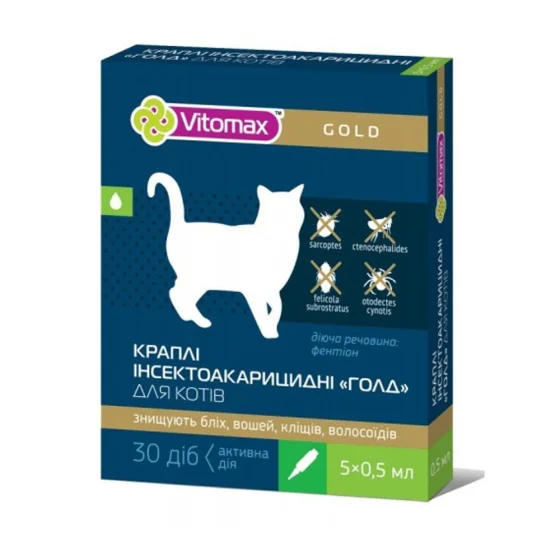 Капли на холку Vitomax Gold инсектоакарицидные для кошек, 1 пипетка, 0.5 мл