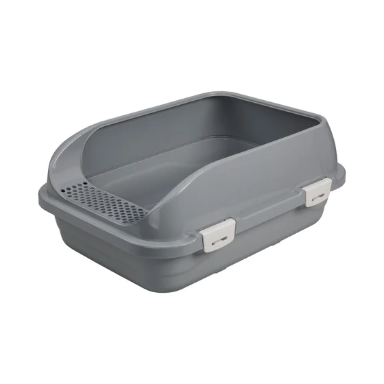 Туалет с высокими бортами, для взрослых котов и кошек, препятствующий рассыпанию наполнителя. Выполнен из качественного пластика, не скользит по поверхности. Есть дополнительная ступенька, чтобы котику было легче зайти в лоток. Легко моется и чистится.